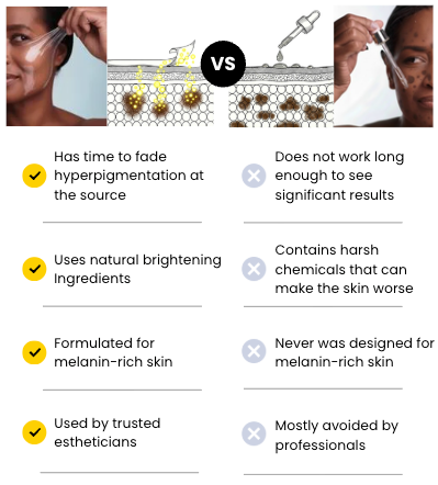 Compared to regular products, our overnight mask gently and quickly reaches the source of any hyperpigmentation, fading it 45 times faster than anything else