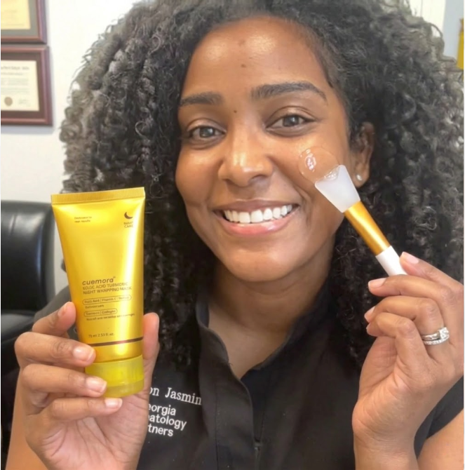 Our Kojic Acid Turmeric Overnight Mask fades discoloration and brightens skin while you sleep.