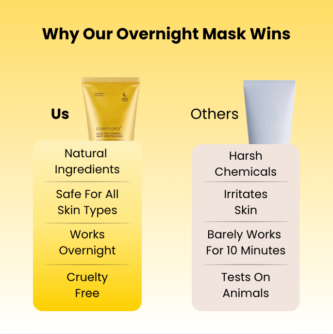 Our Kojic Acid Turmeric Overnight Mask fades discoloration and brightens skin while you sleep.